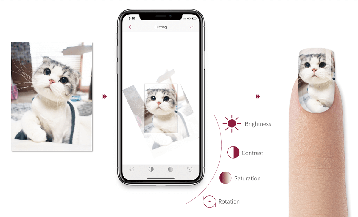 Pictures in the mobile/tablet album can be converted into nail patterns